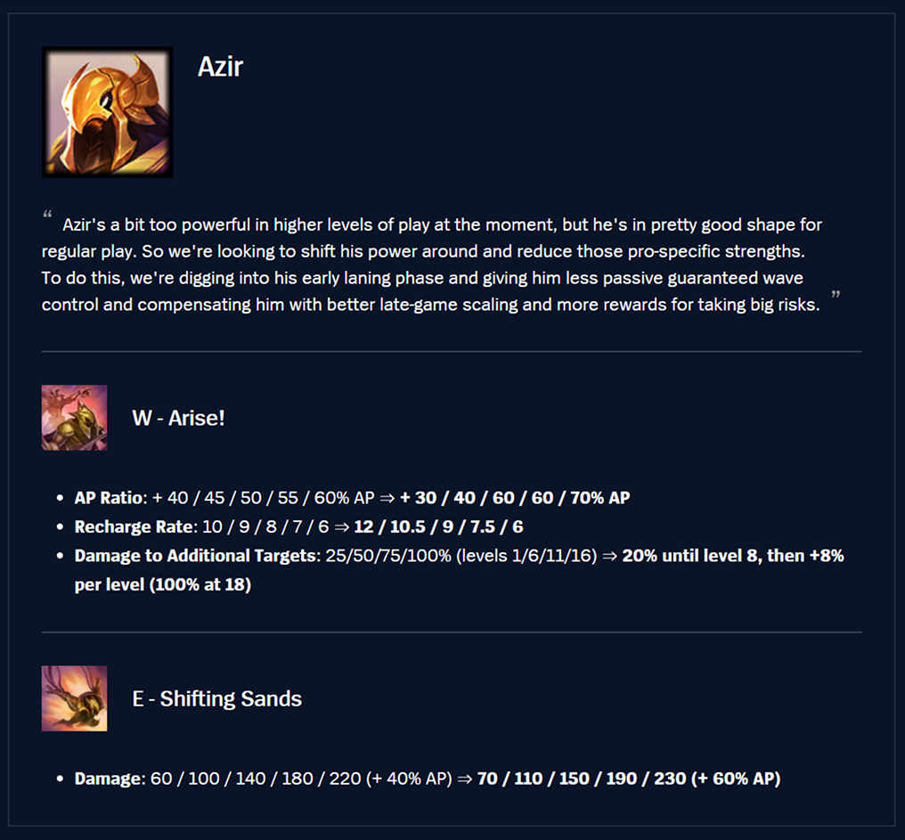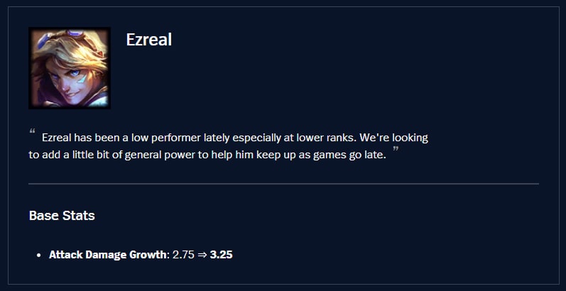 Ezreal’s looking a little sad when compared to other ADCs, so we’re giving him some increased damage to help keep up. Meanwhile we’re also bringing down some of the most extreme ADC prismatics.