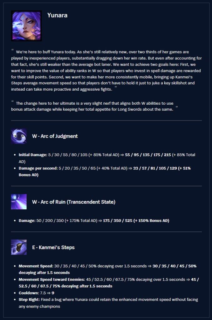 Fixed a bug that caused Yunara’s Q VFX to split when attacking certain units.