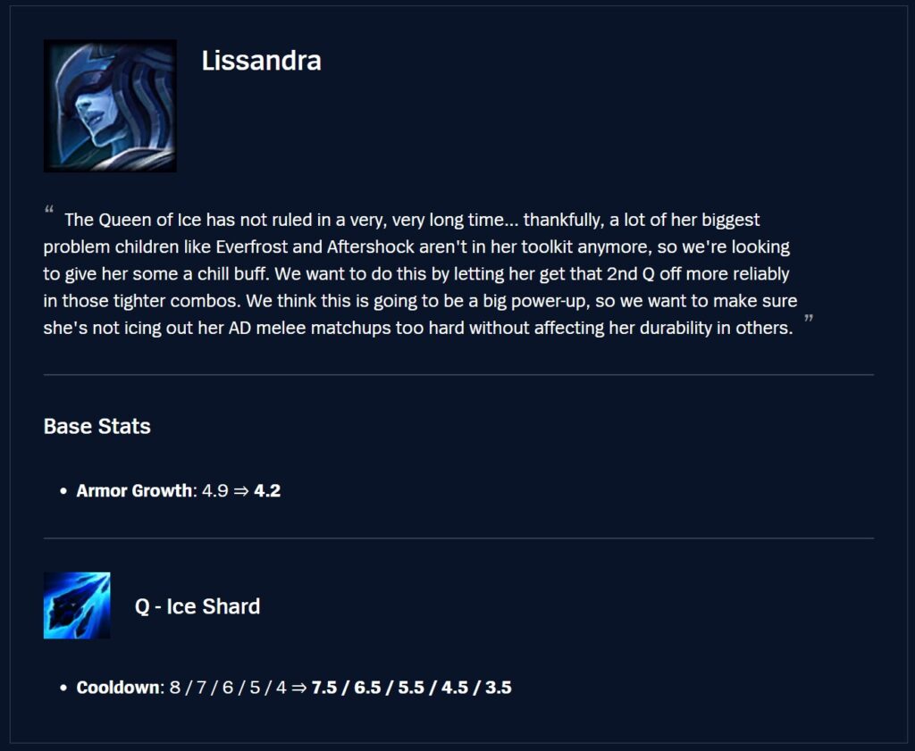 – Lissandra hasn’t really felt the same since her Q cooldown was nerfed in Season 9